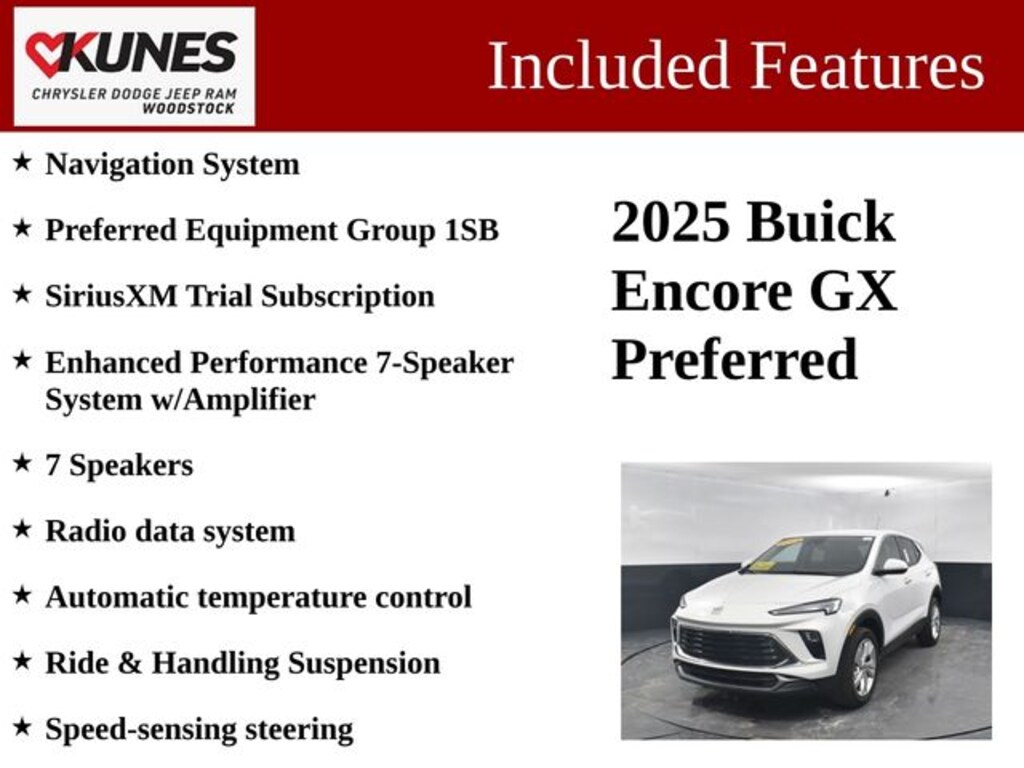 Discover the perfect balance of style, technology, and performance in the 2025 Buick Encore GX Preferred. Visit our showroom today and experience the difference for yourself. We're confident you'll be impressed by this exceptional SUV.