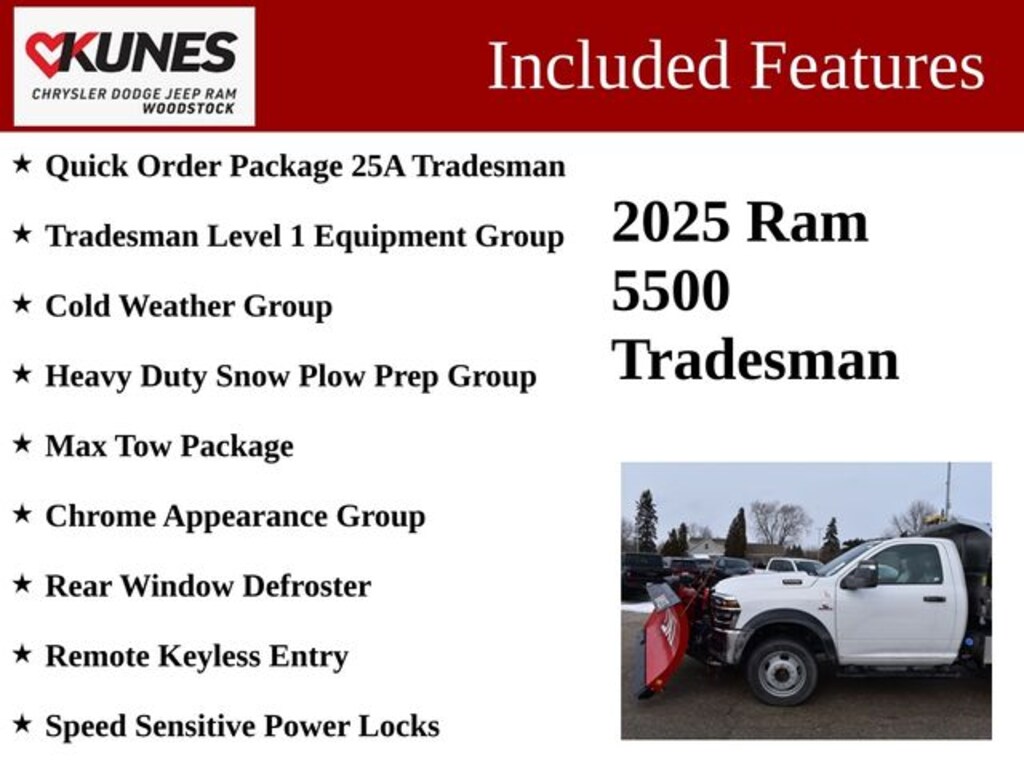 19.5" x 6.0" Steel Wheels, Black Exterior Mirrors, Black Power Heated Fold Telescope Mirrors, Bright Front Bumper, Center Hub, Chrome Appearance Group, Chrome Grille Surround, Cold Weather Group, Electronic Shift-On-The-Fly Transfer Case, Engine Block Heater, Exterior Mirrors Courtesy Lamps, Exterior Mirrors w/Heating Element, Exterior Mirrors w/Supplemental Signals, Front 1-Touch Down Power Windows, Heavy Duty Snow Plow Prep Group, Manual Folding Exterior Mirrors, Manual Telescoping Mirrors, Matte Black Mesh w/Chrome Grille, Max Tow Package, Mirror Running Lights, MOPAR Winter Front Grille Cover, Power Adjust Mirrors, Power-Adjustable Convex Aux Mirrors, Quick Order Package 25A Tradesman, Rear Window Defroster, Remote Keyless Entry, Speed Sensitive Power Locks, Tradesman Level 1 Equipment Group, Trailer Brake Control, Trailer Light Check, Upgraded Door Trim Panel, Upgraded Rear HD Stabilizer Bar.
