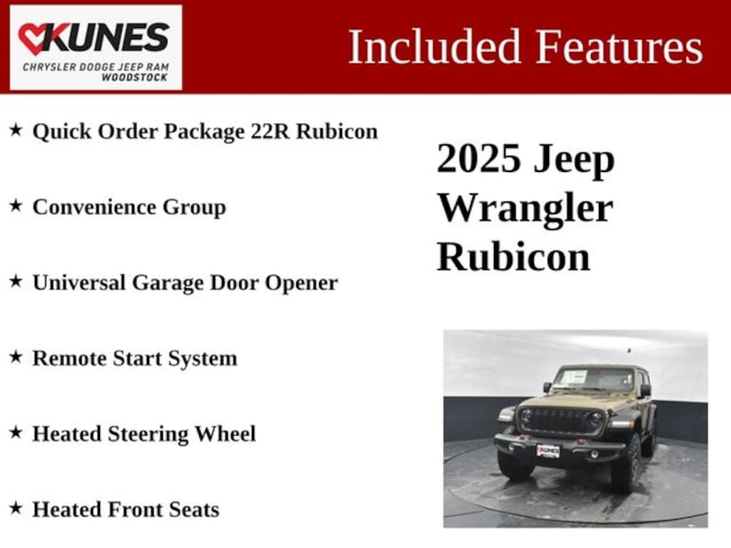 Convenience Group, Heated Front Seats, Heated Steering Wheel, Quick Order Package 22R Rubicon, Remote Start System, Universal Garage Door Opener.