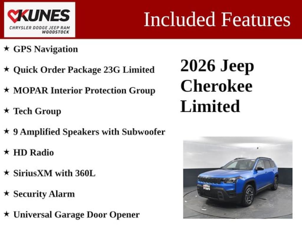 Experience the ultimate in versatility and capability with the 2026 Jeep Cherokee Laredo. Visit our showroom today and discover how this exceptional SUV can transform your driving experience. We're confident that once you take it for a test drive, you'll be captivated by its unrivaled performance, cutting-edge features, and exceptional value. Price includes: $1000 - 2026 National Retail Bonus Cash . Exp. 04/30/2026