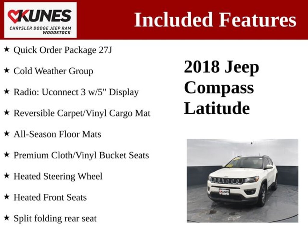 Discover the perfect combination of style, capability, and comfort in this 2018 Jeep Compass Latitude. Boasting a sleek white exterior and a well-appointed interior, this versatile SUV is ready to elevate your driving experience.