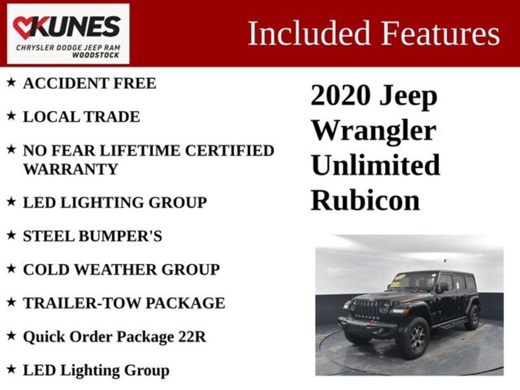 This Wrangler Unlimited Rubicon is also equipped with the STEEL BUMPER GROUP, LED LIGHTING GROUP, COLD WEATHER GROUP, and TRAILER TOW & HD ELECTRICAL GROUP, ensuring you have the tools to conquer any terrain.