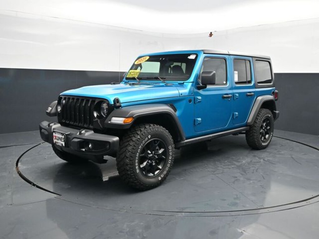 Recent Arrival! Certified. 2021 Jeep Wrangler Unlimited Willys 4WD Sting-Gray Clearcoat Wrapped in Bikini Blue, 4-Wheel Drive Swing Gate Decal, 7.0" Touchscreen Display, Air Conditioning w/Auto Temperature Control, Air Filtering, Anti-Spin Differential Rear Axle, Apple CarPlay, Automatic Headlamps, Aux Battery, Black Grille, Black Trail Rated Badge, Cloth Low-Back Bucket Seats, Cluster 7.0" TFT Color Display, Cold Weather Group, Convenience Group, Deep Tint Sunscreen Windows, Driver door bin, For More Info, Call 800-643-2112, Freedom Panel Storage Bag, Front 1-Touch Down Power Windows, Front anti-roll bar, Front Bucket Seats, Front Center Armrest w/Storage, Google Android Auto, GPS Antenna Input, Heated Front Seats, Heated Steering Wheel, Integrated Center Stack Radio, Integrated roll-over protection, Leather Wrapped Steering Wheel, LED Headlamp & Fog Lamp Group, Matte Black Jeep Badge, Mold In Color Bumper w/Gloss Black, MOPAR All-Weather Floor Mats (DISC), No Soft Top, Non-Lock Fuel Cap w/o Discriminator, Normal Duty Suspension, Occupant sensing airbag, Outside temperature display, Passenger door bin, Passenger vanity mirror, Power Heated Mirrors, Quick Order Package 25W Willys (DISC), Radio data system, Radio: Uconnect 3 w/5" Display, Radio: Uconnect 4 w/7" Display, Rear anti-roll bar, Rear reading lights, Rear Window Wiper/Washer, Remote Keyless Entry, Security Alarm, SiriusXM Radio Service, SiriusXM Satellite Radio, Speed Sensitive Power Locks, Split folding rear seat, Sun Visors w/Illuminated Vanity Mirrors, Technology Group, Telescoping steering wheel, Universal Garage Door Opener, USB Host Flip, Variably intermittent wipers, Wheels: 17" x 7.5" Black Steel Styled, Wheels: 17" x 7.5" Moab Black Aluminum, Willys, Willys Hood Decal, Wrangler Decal.
